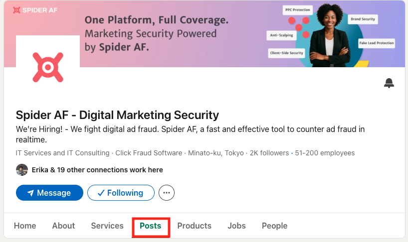 On the company page, locate and click on the "Posts" tab. This action directs you to the post's feed, offering an organized view of the company's content.